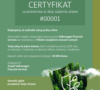– Widzimy, że inicjatywy prośrodowiskowe nie są dla klientów tylko dodatkiem, ale stają się jednym z elementów oceny oferty i marki. Z naszych wewnętrznych badań wynika, że 87 proc. klientów docenia firmy angażujące się w ochronę środowiska. Dla części z nich akcja „Kup polisę - posadź drzewo” miała również wpływ na samą decyzję - nie tylko w kwestii wyboru produktu, ale i sposobu zakupu. Niemal połowa badanych deklaruje, że to właśnie ekologiczna inicjatywa przekonała ich do kupna polisy online. To pokazuje, że odpowiedzialne podejście do środowiska ma dziś bardzo praktyczny wymiar. Jest zauważane, oceniane i realnie wpływa na preferencje konsumentów - zaznacza Mateusz Granoszek, kierownik działu marketingu w Volkswagen Financial Services.